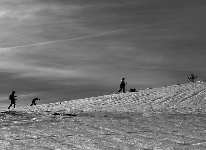 Belle diagonale, on sent l'effort de ces sportifs ! Pour le traitement, la neige est un peu grisouille et ne contraste pas suffisamment à mon gout avec le ciel. Et peut être virer le personnage du haut qui n'est plus sur le même alignement et a une position statique qui bloque le regard. Amts.