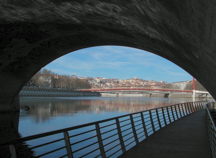Contrairement à ce qui vient d'être dit (et qui améliorerait certainement la photo) je vois un autre point intéressant c'est que du même endroit partent ces trois belles courbes, la voûte, le pont et la passerelle.