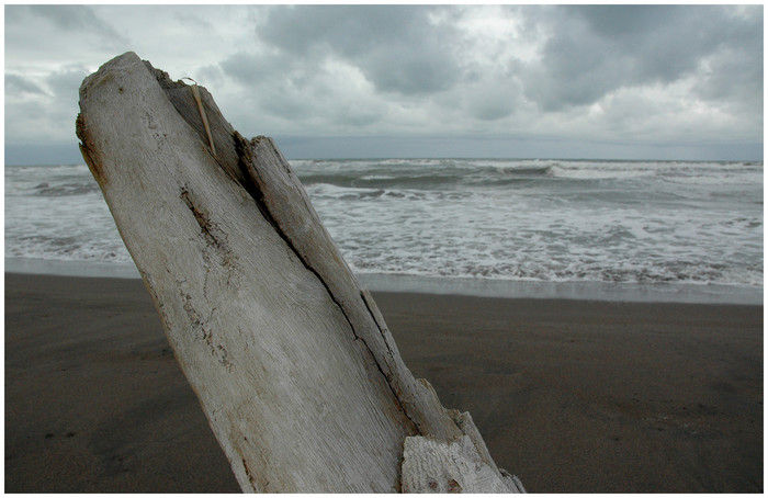 face à une mer un peu mouvementée..sympa ce bois flotté qui habille bien la photo...j'aime..merci