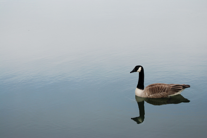 Jolie bernache du Canada, avec un superbe reflet. J'aurais recadré plus sur le titi car il me donne l'impression d'être seul au monde dans ce vaste champ d'eau