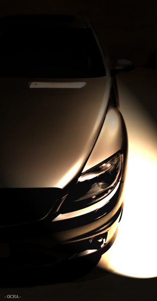 Manque un poil de netteté ... Tu as utilisé le filtre éclairage ou un masque ? ... Pas évident ici pour rentre le coté naturel d'un éclairage, il faudrait utilisé un calque sur lequel tu réapplique ton effet puis utilise les outils de déformation pour appliquer l'éclairage sur la voiture pour plus de réalisme