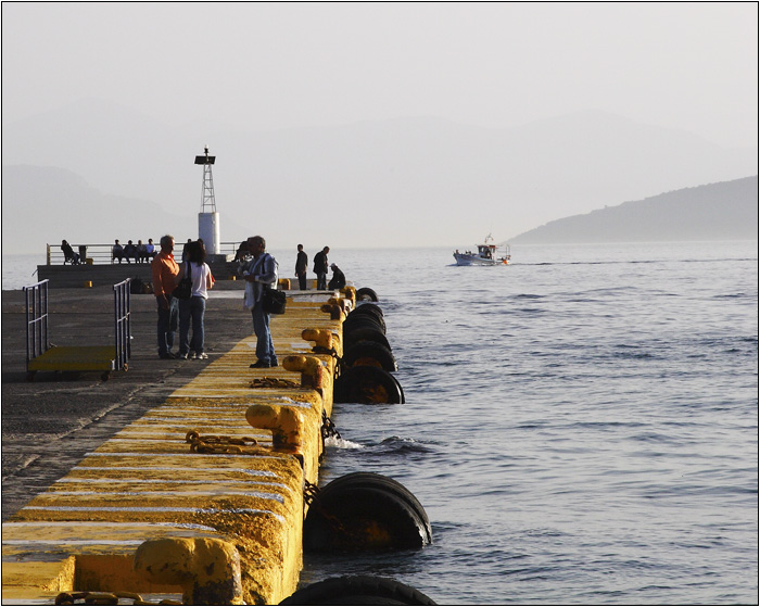 belle image bien composée j'aime bien le rapport entre les gens et le bateau au loin
