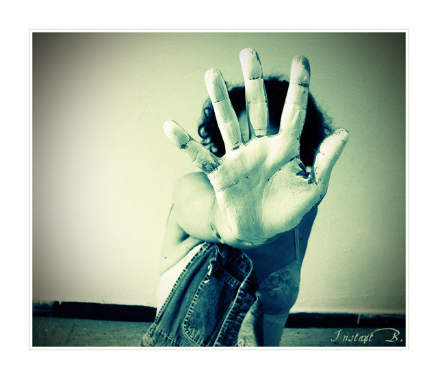 Très bonne idée que cette main en avant colorée de peinture, je regrette un peu que cette main ne soit pas plus contrastée pour laisser apparaître sa texture-peinture, mais j'aime ce genre!