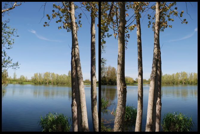 Ho ben si moi j'aime bcp un bon effet deux en un lol! pff le truc ki cloche ben pi etre o nivo des ombres sur les troncset leur nombre sa agrandi l'image de droite. Un AP un peu pâle!Sinon belle compo,ma biche! Biz brother