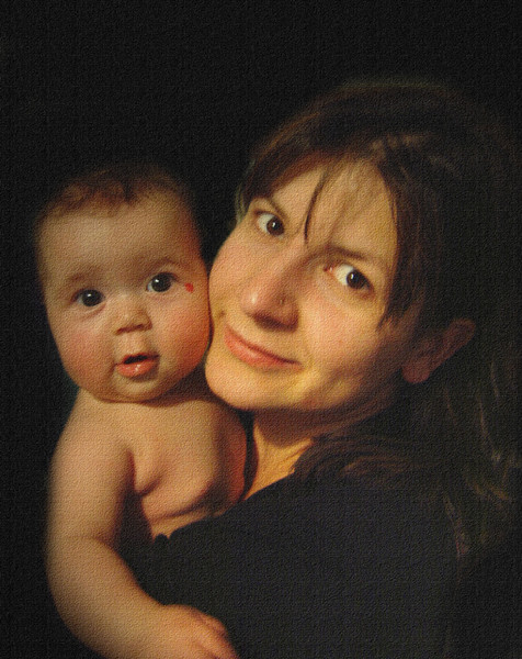 Personnellement je n'accroche pas trop à ce traitement un peu "gauffré". Mais c'est ton choix, ce n'est qu'une question de goût! Les expressions des modèles sont excellentes, la fierté de la maman et la joie du bébé. Peut-être avec un léger cadre pour mieux délimiter les bords de la photo. Donc tu l'auras compris, à part le traitement, j'aime beaucoup.