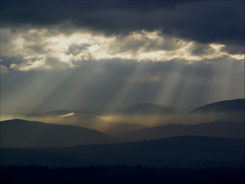 Toujours magnifiques les rayons de soleil filtrés à travers les nuages. Une petite propo de recadrage, en panorama, sans les nuages, pour voir.