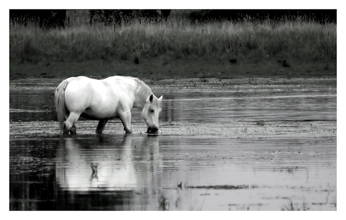 j'aime bien le reflet qui est brouillé par le cheval