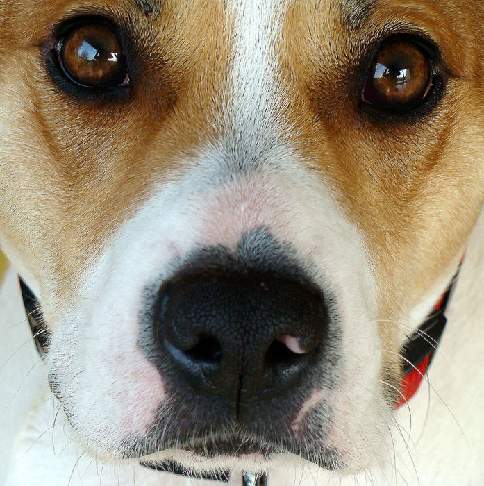 là elle m'aime à moins que ce ne soit le biscuit au dessus de l'objectif...