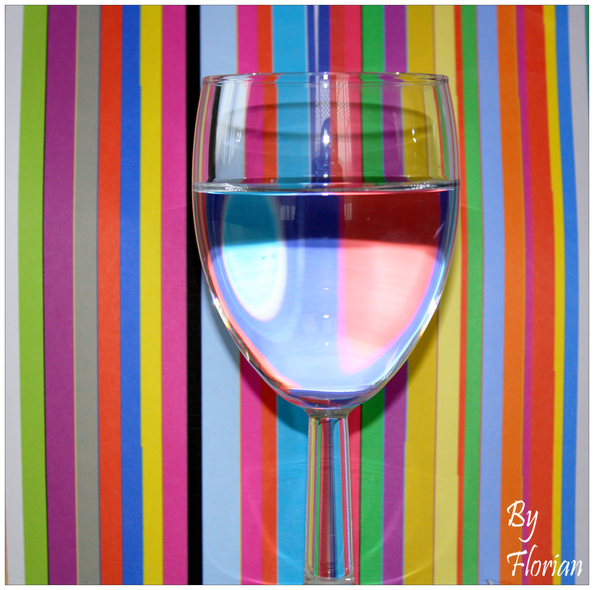 j'aime bien le graphisme et les couleurs et le format carré qui te permet d'être presque centré sans gêner j'aurais bien aimé voir le pied du verre. Je suis dubitatif sur la distorsion en barillet : au premier abord, elle me gêne, mais elle a tendance à rappeler la courbure du verre. J'aurais peut être choisi un éclairage à 4 lampes pour ne pas avoir d'ombres plutôt qu'un éclairage plongeant dans l'axe (peut-être un flash cobra)