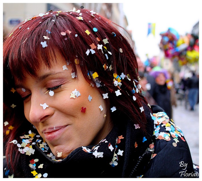 La jeune femme butte un peu sur le cadre (mon seul regret) mais hormi cela, la mise au point est parfaite, la pdc aussi. L'instant est très bien saisi et les couleurs, l'attitude reflètent bien l'ambiance festive.
