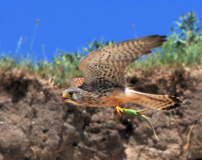 Faucon crécerelle à la chasse