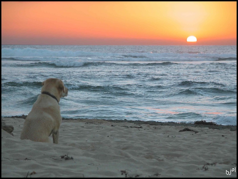 Ta photo a une note d'humour en plus avec ce labrador qui contemple un coucher de soleil....