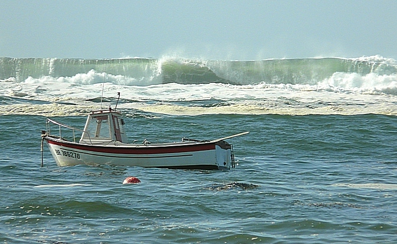Photo étrange : on a un peu l'impression que le bateau est du mauvais côté de la vague, en tous les sens du terme !