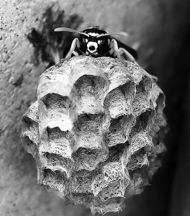Par contre, je pense que le N&B ne met pas réellement le sujet en valeur, car la guêpe se noie un peu dans les différents tons.