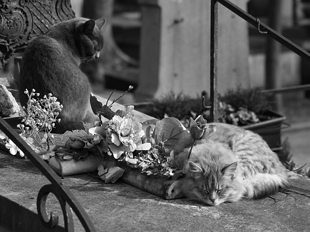Trois de tes passions réunies sur le même cliché, les chats, les vieilles pierres et le N/B...