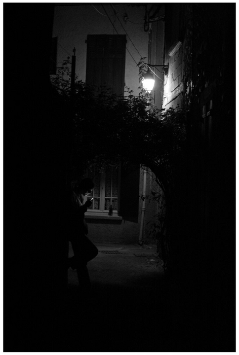 Alors... j'ai besoin de vous sur cette photo, je ne sais pas trop quoi en penser, perso je l'aime bien elle dégage pour moi un sentiment de mystère... une ombre dans la nuit, une forte présence de noir... mais serait-elle pas un peu trop sombre ? le personnage serait-il pas assez détaché du mur...