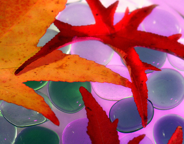 De bien belles feuilles dentelées aux couleurs chaudes, mais le fond n'est pas du tout assorti à ces feuilles ce qui choque un peu mes yeux, sans doute voulu. La matière ressort bien et le cadrage est bon!
