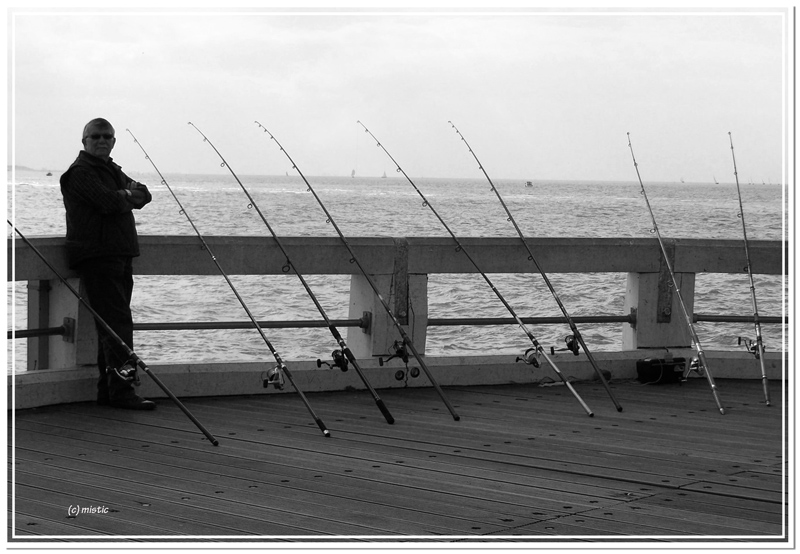 En ce qui me concerne ton image manque un peu de contraste et le personnage de lumière, tu es en contre-jour ? L'horizon penche et je ne suis pas fan du cadre, attention la partie gauche n'est pas égale à celle de droite.Un pêcheur qui ne regarde pas l'objectif serait mieux. Beaucoup de "reproches" je sais mais on est là pour ça, non ?