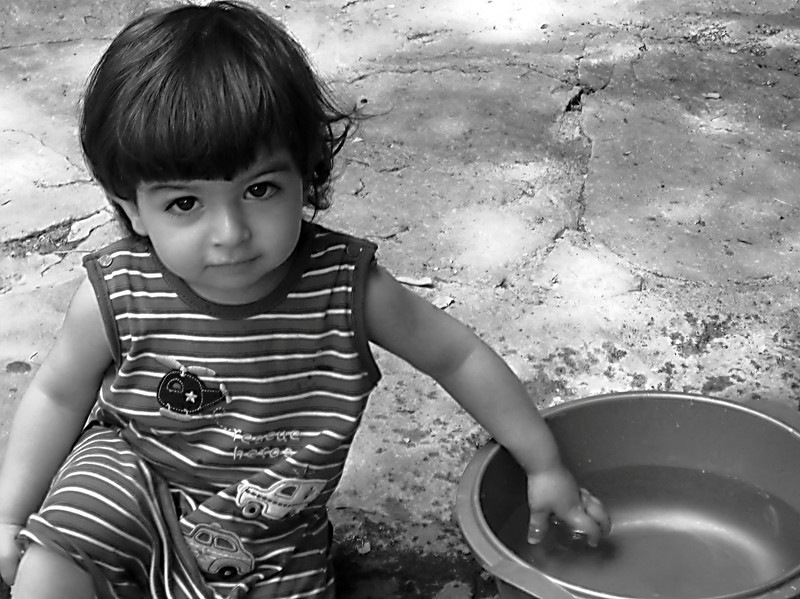 mignon, je vois pas bien ou est la mise au point, visage un peu flou pour moi et.. une main dans l'eau et une... coupée...!