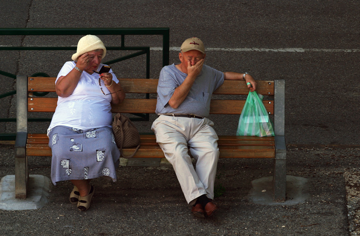 Les verticales et horizontales très marquées de la rambarde, du banc, du trottoir, du marquage sur la route rigidifient, voire étouffent cette photo.