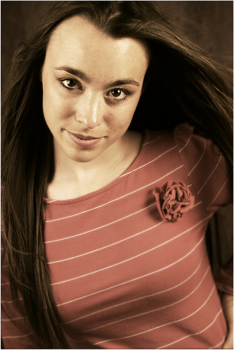 un beau traitement que j'aimerais bien savoir comment faire beau portrait y'a juste l'oeil droite que l'ombre sous l'oeil dérange un peu j'aimerais bien un jour faire d'aussi jolie portrait Bravo ! la pose du modèle comme l'autre smile sont superbe !