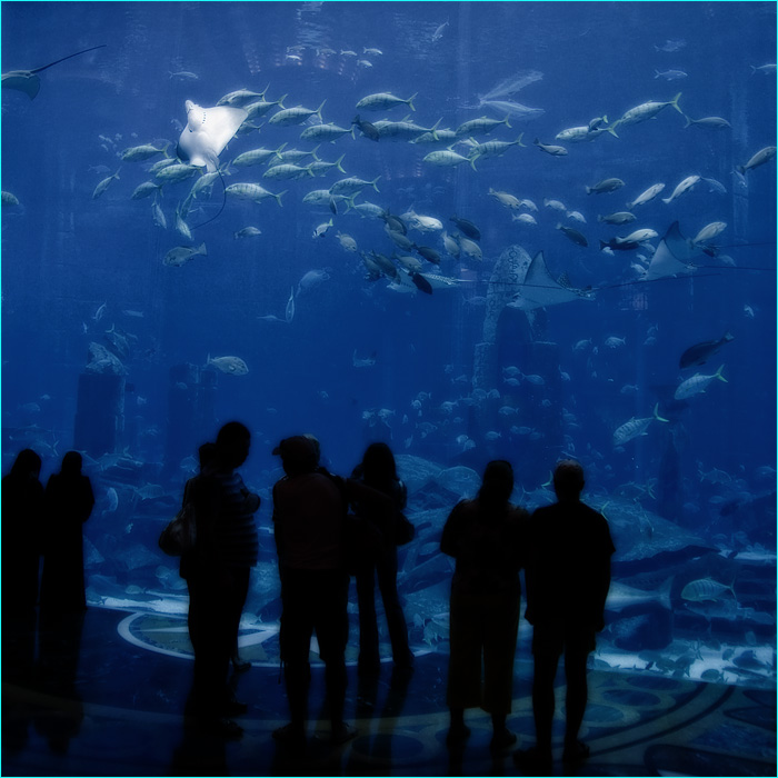 L'aquarium de l'hôtel contient 10 millions de litres d'eau. On y trouve une petite baleine.
