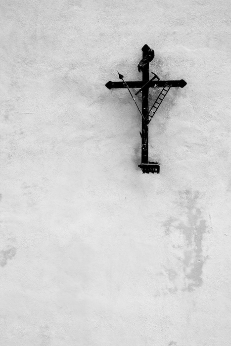 je me demande si çà ne serait pas mal en cdrant de façon à ce que le crucufix soit dans la diagonale de l'image, cela rappelrait la montagne, comme si çà montait ( pas facile à exprimer ! et mal exprimé !...).