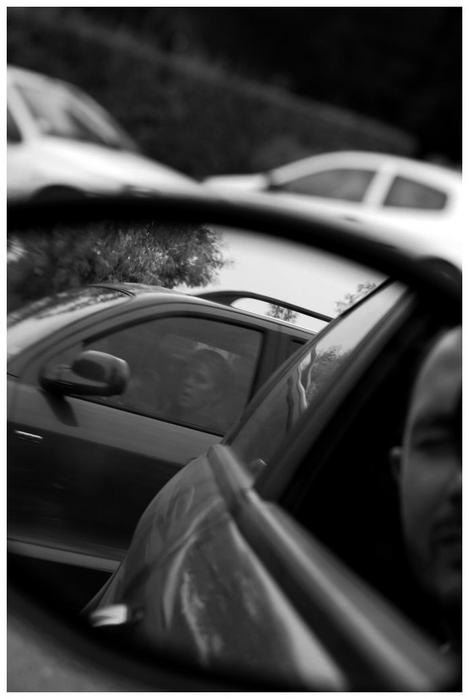 Marrant.. Bien vu.. Ces regards qui semblent s'observer par rétros interposés.. cadrage, nb.. j'aime bien