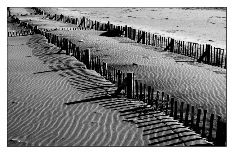 Très joli N et b...du graphisme, des ombres, avec ces deux diagonales de piquets...marges blanches inégales ??? dommage amha