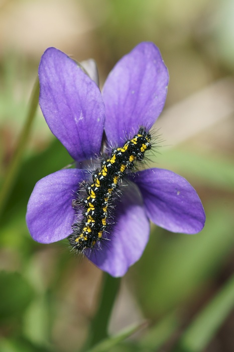 la netteté est vraiment ciblée sur la chenille, dommage un peu pour les pétales, mais tout cela se détache bien du fond.