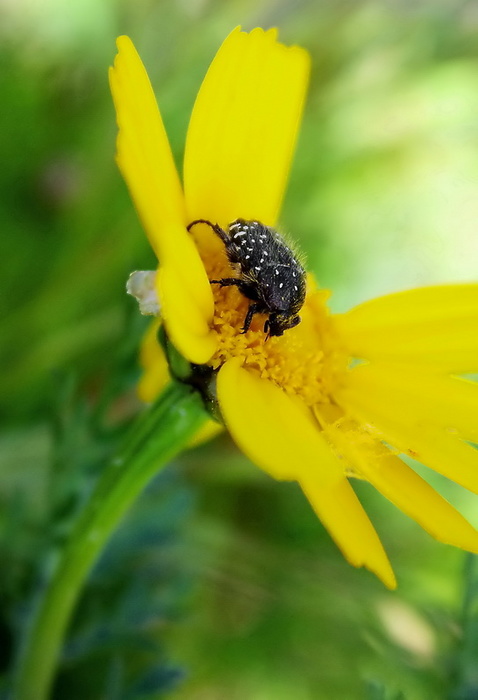 La netteté sur la bestiole est bonne, bien qu'on ne distingue pas vraiment ce que c'est, mais le cadrage ne l'est pas. Trop centré, le bas est inutile, il aurait fallu laisser plus d'espace à droite, ne pas couper les pétales...