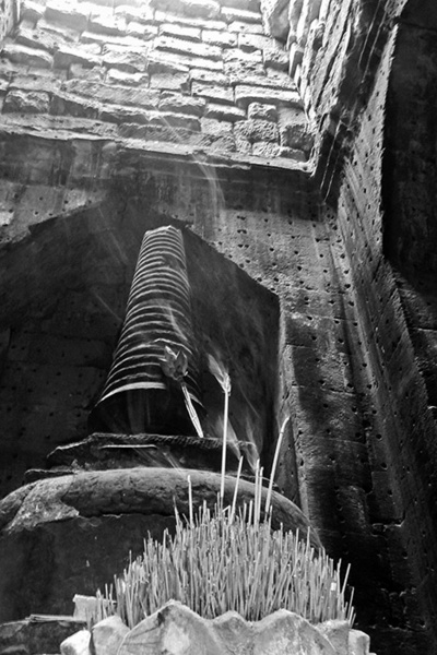 Cette perspective ascensionnelle et fumante et ces pierres fumées sont très parlantes; Je verrai bien un peu plus de netteté sur l'autel et un peu moins de luminosité au premier-plan, légèrement plus de contraste aussi. Bravo!