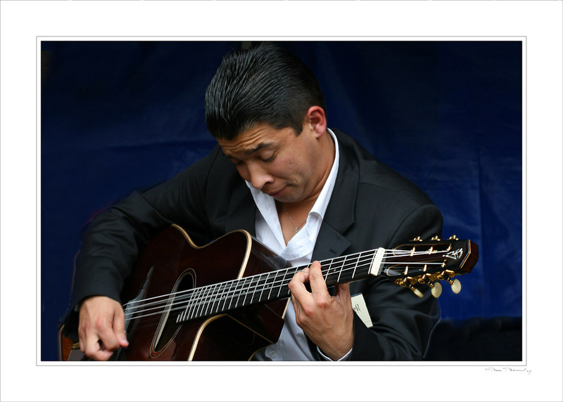 L'expression, l'attitude, la lumière et les teintes sont excellentes mais le cadrage est trop serré : mains et tête bord cadre et guitare coupée...