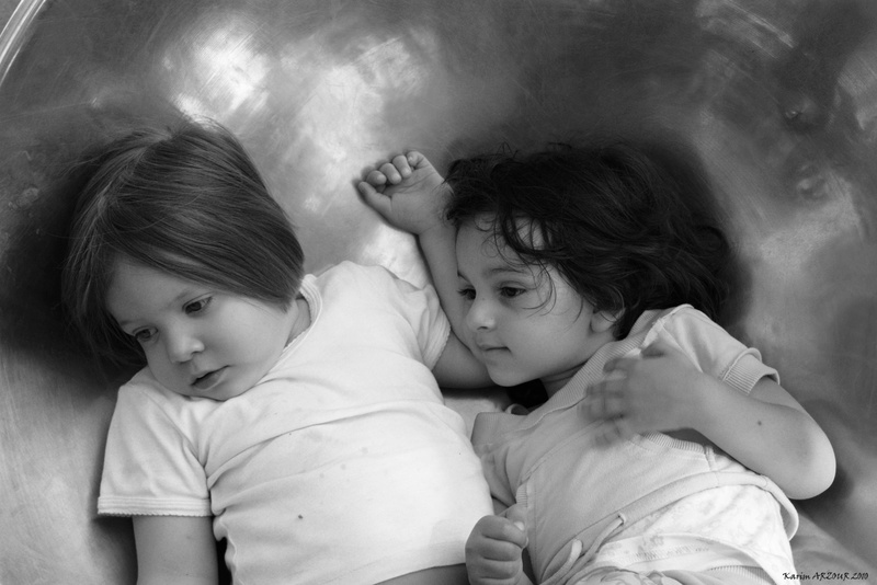 Les nuances sont magnifiques,la lumière naturellement douce tout comme l'expression des enfants. Le léger bouger de la main renforce le coté vivant de ce double portrait. Dommage que le cadrage ne permette pas de les inscrire correctement dans l'espace.