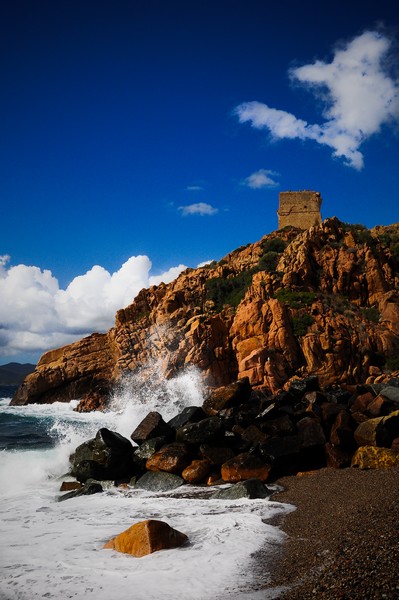 "La lumière fait bien ressortir la teinte rouge du rocher. La tour me paraissait écrasée par la masse" Phénomène qui me paraît moins présent sur celle-ci