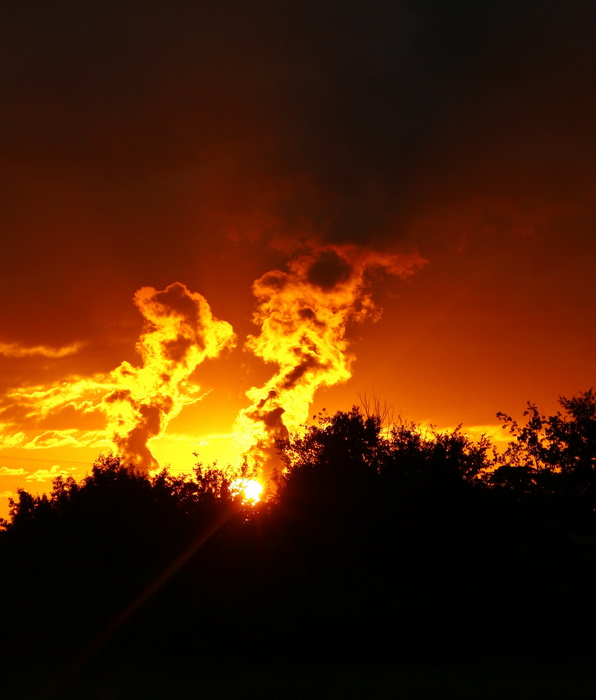 Merci Caouinha, pour la petite histoire au loin, ce sont les deux cheminées de la centrale nucléaire de Golphech dans le sud ouest, le soleil était pile dans les fumées....