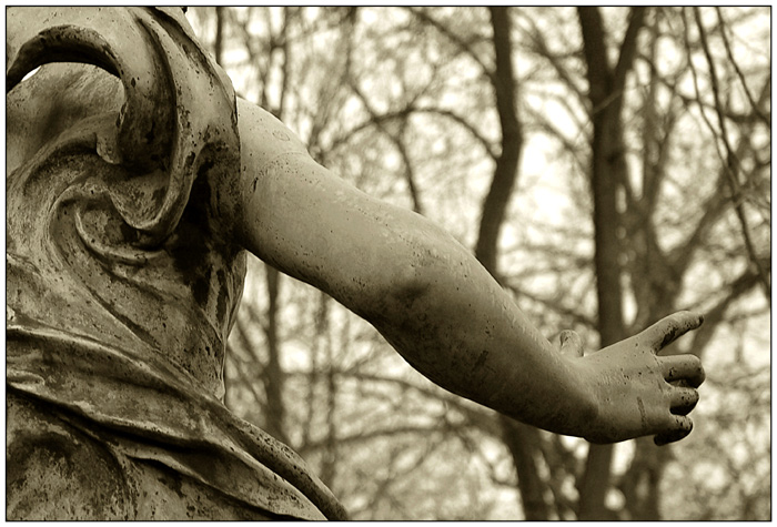 bel angle de vue, très poétique, j'aime bien. je verrais bien un peu plus de contraste peut être ? pour que la main qui nous guide se détache un peu plus du fond.