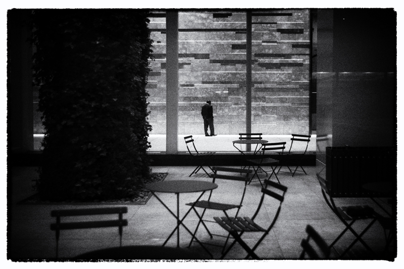 le flou du premier plan bien géré avec la disposition des chaises vides nous emmene tout droit vers cette personne ....