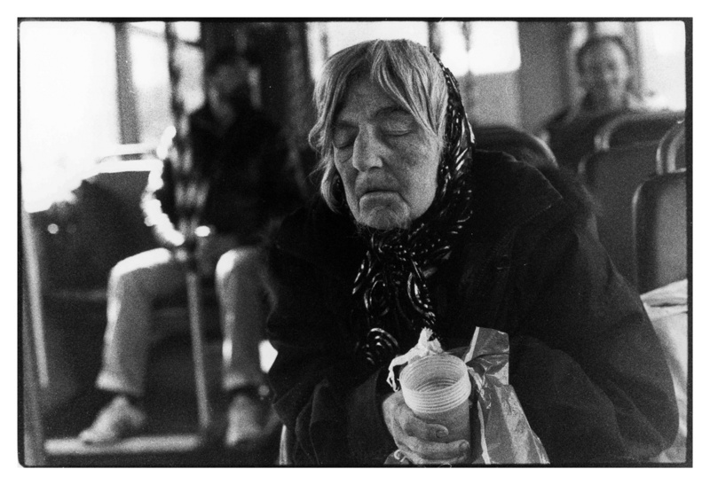 De nouveau, la tristesse avec ce visage qui ne regarde plus. Il se détache du fond flou dans lequel il me semble distinguer que l'homme de droite sourit. Lui regarde l'objectif. C'est dans un bus, n'est-ce pas?
