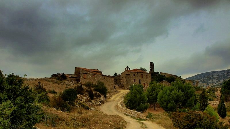 Perillos est un village abandonné depuis le début du siècle dernier près d'Opoul dans les Pyrénées-Orientales.Actuellement il est pris en charge par de courageux bénévoles qui ont entrepris sa restauration. Heureusement, car son intérêt est de tout premier ordre!. Sa visite est passionnante et le jour ou j'ai pris ce cliché, le ciel était menaçant et menaçait de me tomber sur la tête.J'ai un peu modifié le cadrage, le contraste et accentué les couleurs. Ceci explique l'absence des données mais j'ai cru bien faire...