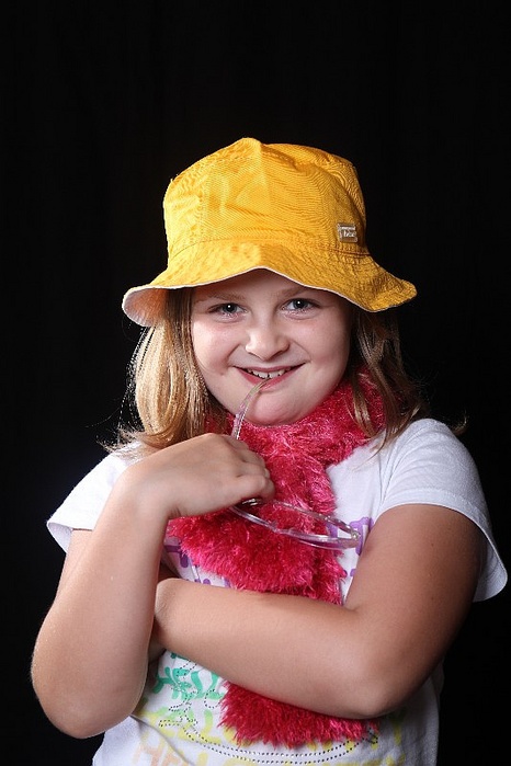 je ne vois pas ou tu as placé ton flash avec nid d'abeille habituellement cela s'utilise en douche au dessus du sujet pour donner un petit éclat dans ton cas sur le chapeau.