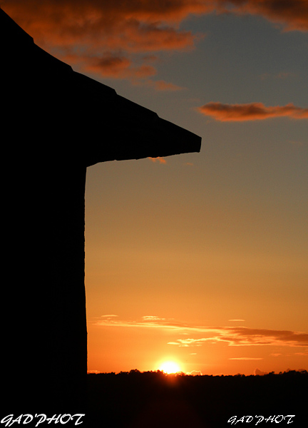 Beau couché de soleil et belle couleur ! J'aime beaucoup la découpe du toît...