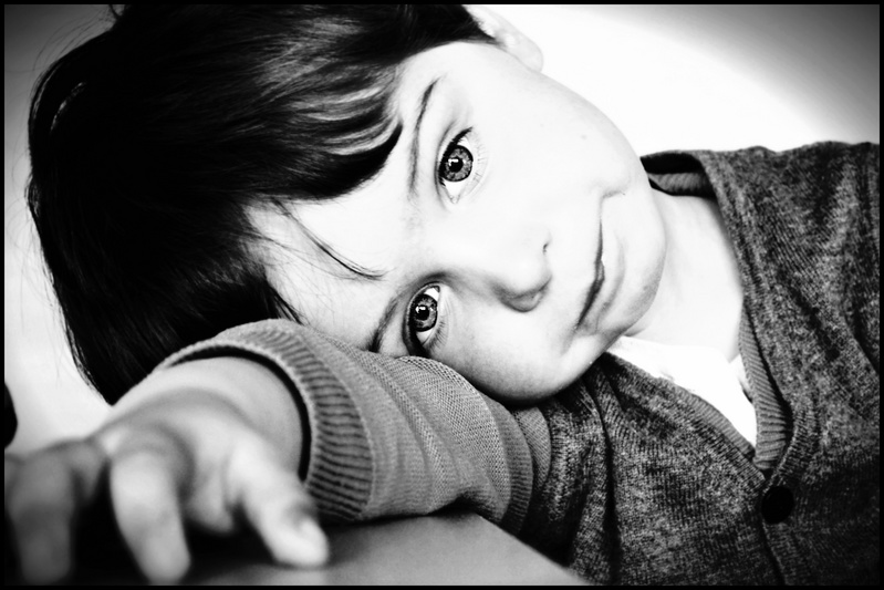 Joli regard! mais le cadrage n'est pas travaillé ici. la coupe du haut passe encore, mais la main coupé... j'aurais cadré éplus sur la gauche ou ou vert le cadre davantage... Jolie petit modèle que tu as là!