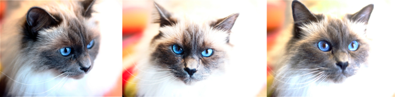 Sympa l'idée de tryptique pour ce joli regard felin, cependant, c'est surex sur les 3, et j'aurai fait varié d'avantage les Pdv dont 2 sont assez (trop) similaires.