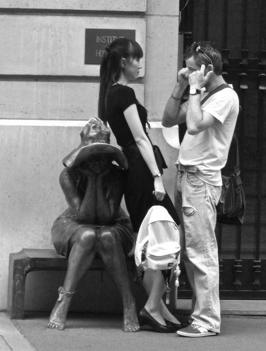 Même la statue s'en bouche les oreilles . Compo sympa, j'aurais sans doute tamponnée la plaque.