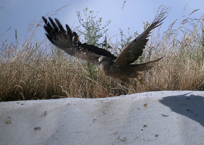 Très bel essai ! Mais, on voit votre ombre à droite et la photo est surex au niveau du tas de sable... Le mouvement d'envol est tout de même sympa
