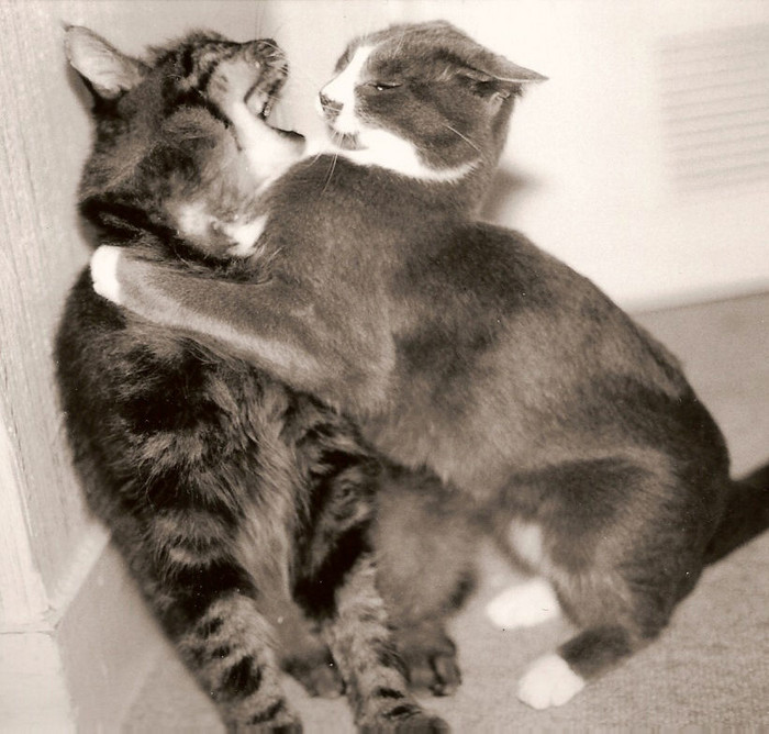 belle bagarre ou jeu, mais il y a un pb de cadrage : ils sont coupés un peu partout. la netteté n'est pas au rendez-vous non plus... il faut les remettre en présence s'ils sont toujours prêts à se battre...