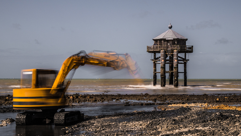 La couleur pour moi. J'aime le flou du bras qui anime mais dommage que le bras de la pelle ne touche pas le sol pour montrer le travail.