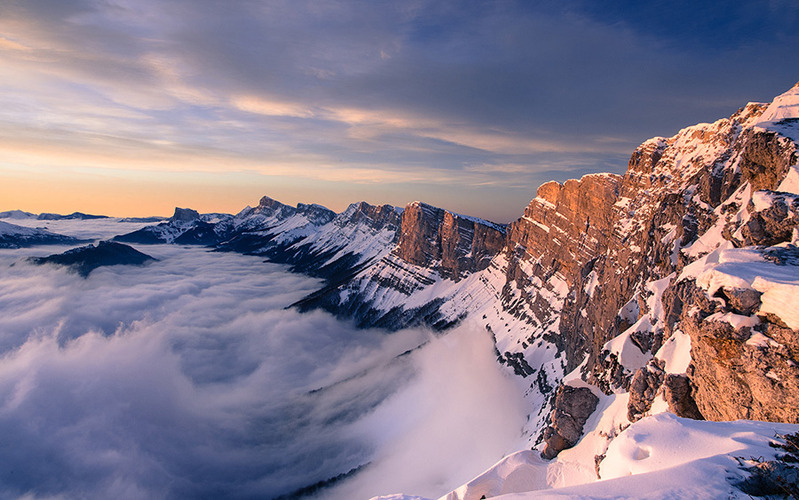 une photo prise cet hiver en Vercors après un départ très matinal à la frontale dans un épais brouillard (en ski de rando) pour être à l'heure pour le lever de soleil sur les Crêtes.