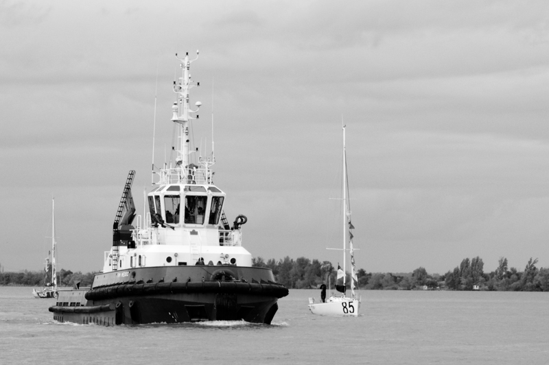 Pour moi les 3 bâteaux sont trop serrés. Un autre angle (impossible ?) aurait peut-être permis de faire une opposition entre le "monstre" et les frèles voiliers.